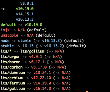아래 명령을 입력하면 nvm에 설치된 node의 리스트를 확인 할 수 있다.