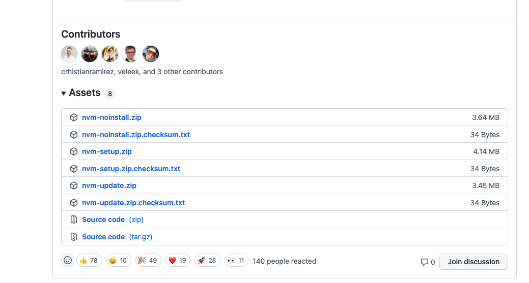 아래 경로로 이동해서 Windows용 nvm설치 파일을 다운로드 한다. nvm-setup.zip 파일을 다운로드 한다.
