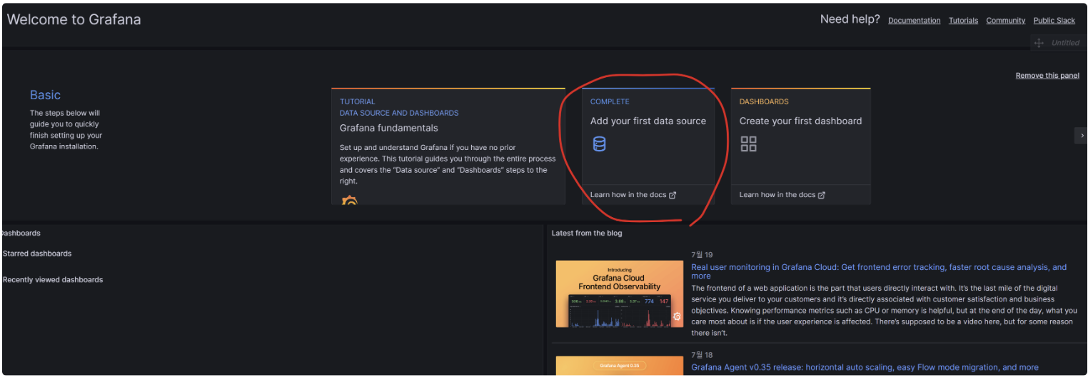 성공했으면 첫 화면으로 이런 대시보드 포맷이 나올것이다.
